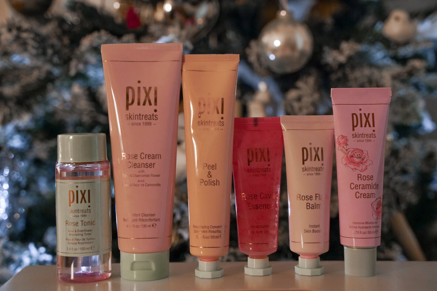 Die Rosenpflegelinie von Pixi Cosmetics bietet nicht nur eine duftende Reise, sondern auch hochwirksame Formeln, die meine Haut mit Liebe und Pflege verwöhnen. Von reinigenden Rosenwasser-Tonics bis zu feuchtigkeitsspendenden Rosen-Cremes – jedes Produkt ist sorgfältig formuliert, um die Haut zu revitalisieren und ihr einen strahlenden Glanz zu verleihen.