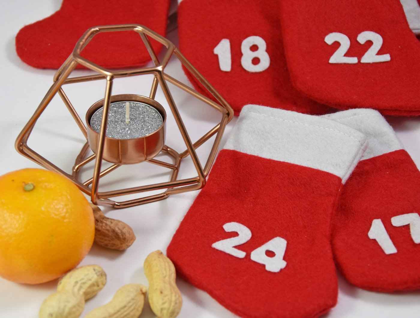 Klassiker sind auch die Adventskalender zum selbst befüllen, wie beispielsweise jener aus 24 kleinen Nikolausstrümpfen oder selbstgebastelte Modelle.