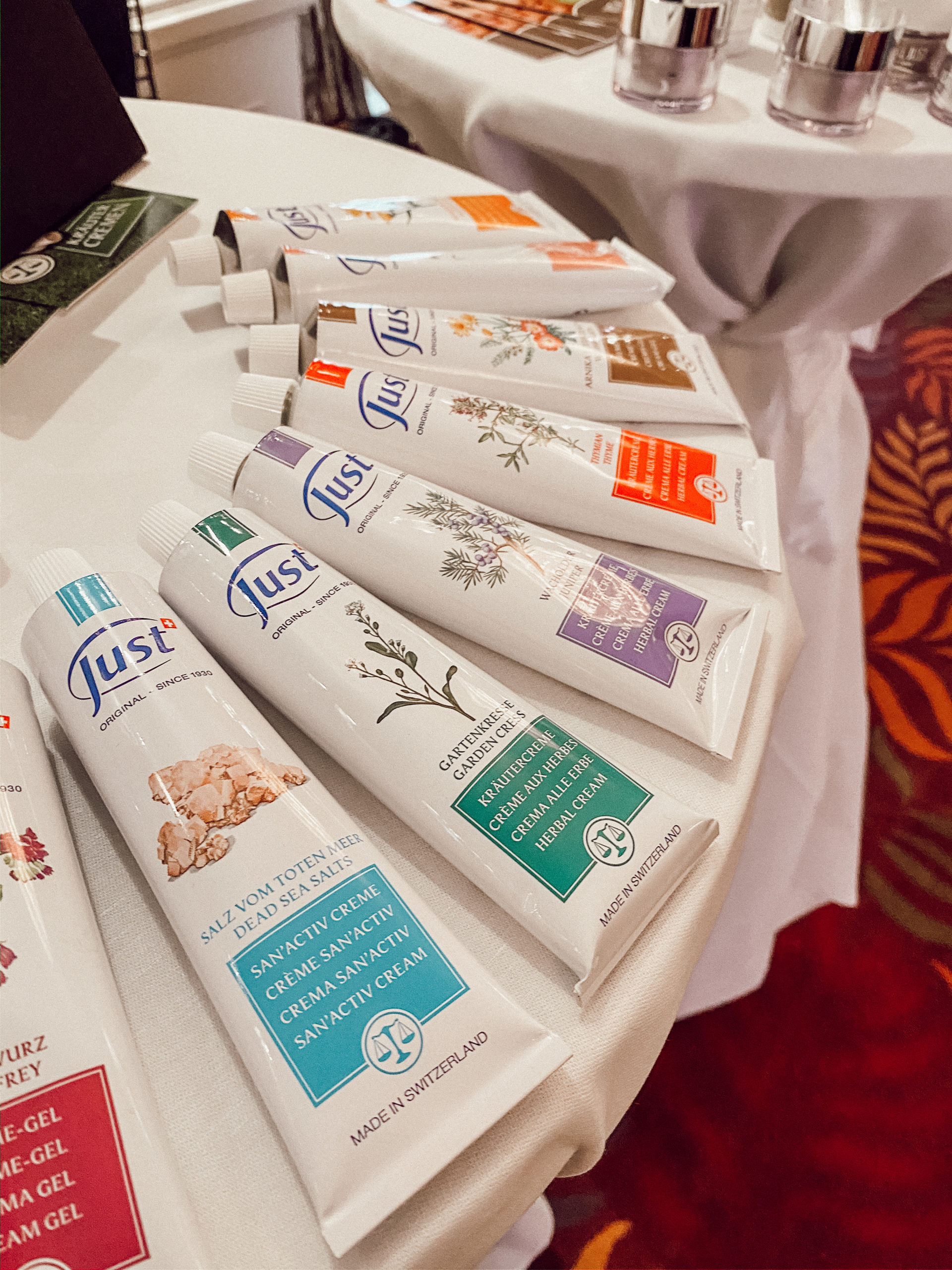 Eine Schweizer Marke, die ich noch nicht kannte ist JUST. Die reichhaltige Natur macht die Pflegeprodukte der Marke JUST so einzigartig. Es gibt 11 Kräutercremes von JUST. Als Fitmacher für Muskeln und Gelenke oder als Erleichterung bei Erkältung. VITAL JUST ist die vollständige System-Gesichtspflegelinie von JUST. Der „Alpine Moisture Complex“ mit Edelweiss, Moschusrose, Schneealge bietet jedem Hauttyp die Nährstoffzufuhr, die sie gerade braucht. Body Shaping Fluid und Lifting Décolleté Fluid sind die aktuellen Neuheiten. Ich bin insbesondere gespannt auf das Body Shaping Fluid, dies hat auch einen wundervollen Duft.