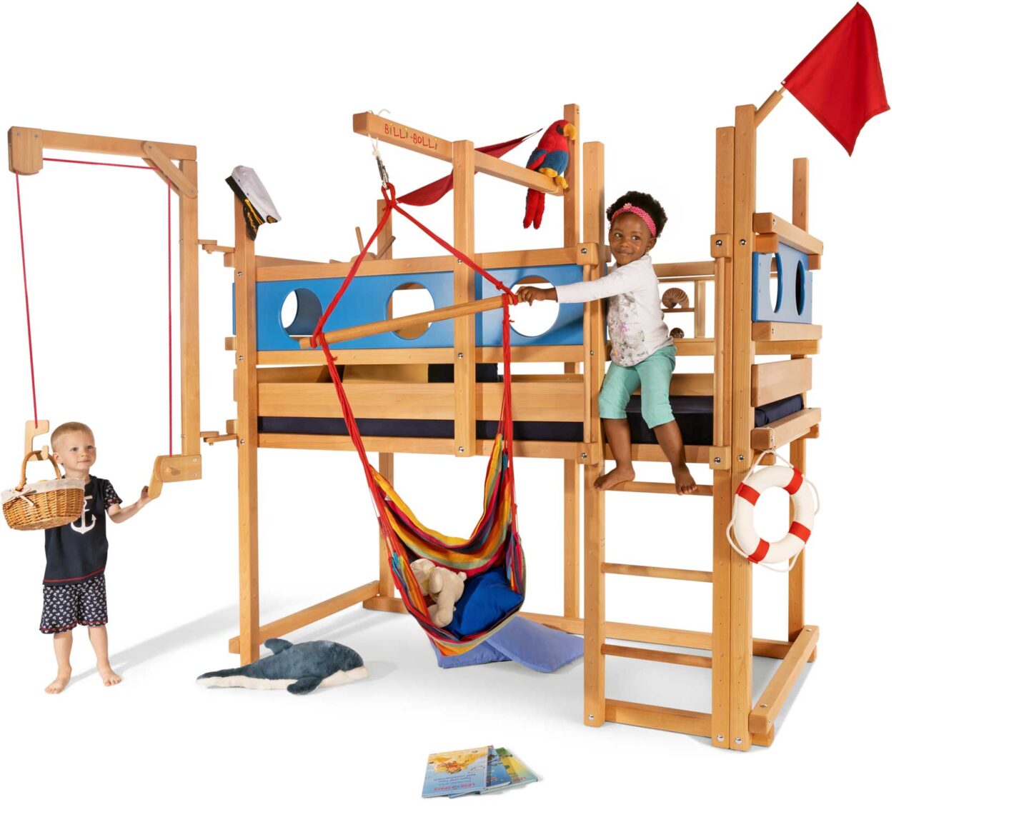 Eine der beeindruckendsten Eigenschaften von Billi-Bolli ist die Möglichkeit zur Individualisierung. Mit einer atemberaubenden Auswahl an Zubehörteilen können die Betten in Piratenschiffe, Ritterburgen, Märchenwälder oder Abenteuerlandschaften verwandelt werden. Dein Kind kann seiner Fantasie freien Lauf lassen und in seinem eigenen kleinen Universum spielen. Das fördert nicht nur die Kreativität, sondern auch die Entwicklung deines Kindes. Diese Betten sind ein Spielplatz und ein Schlafplatz in einem.