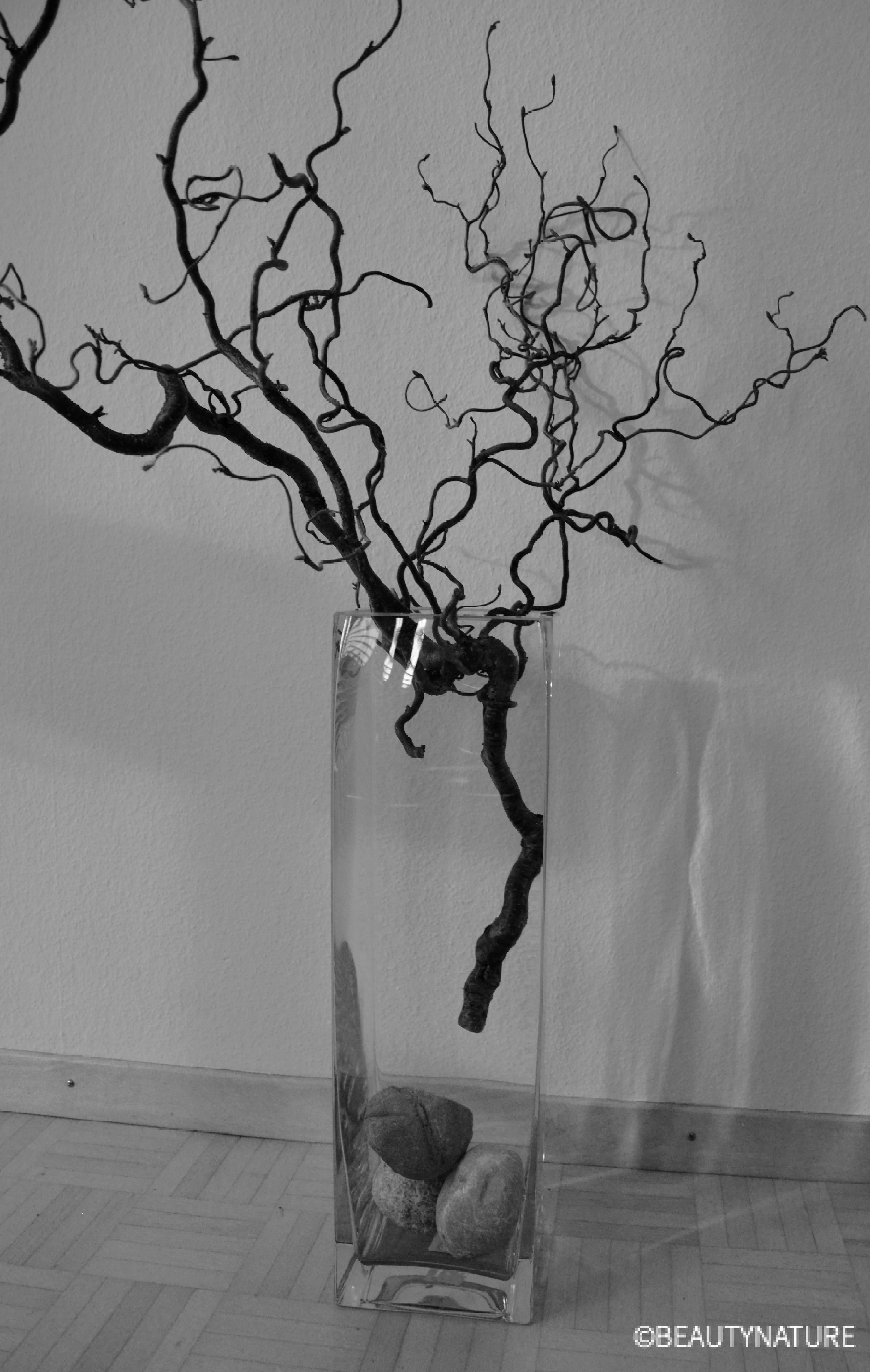 2. Korkenzieher Hasel Ast in die Vase stecken.