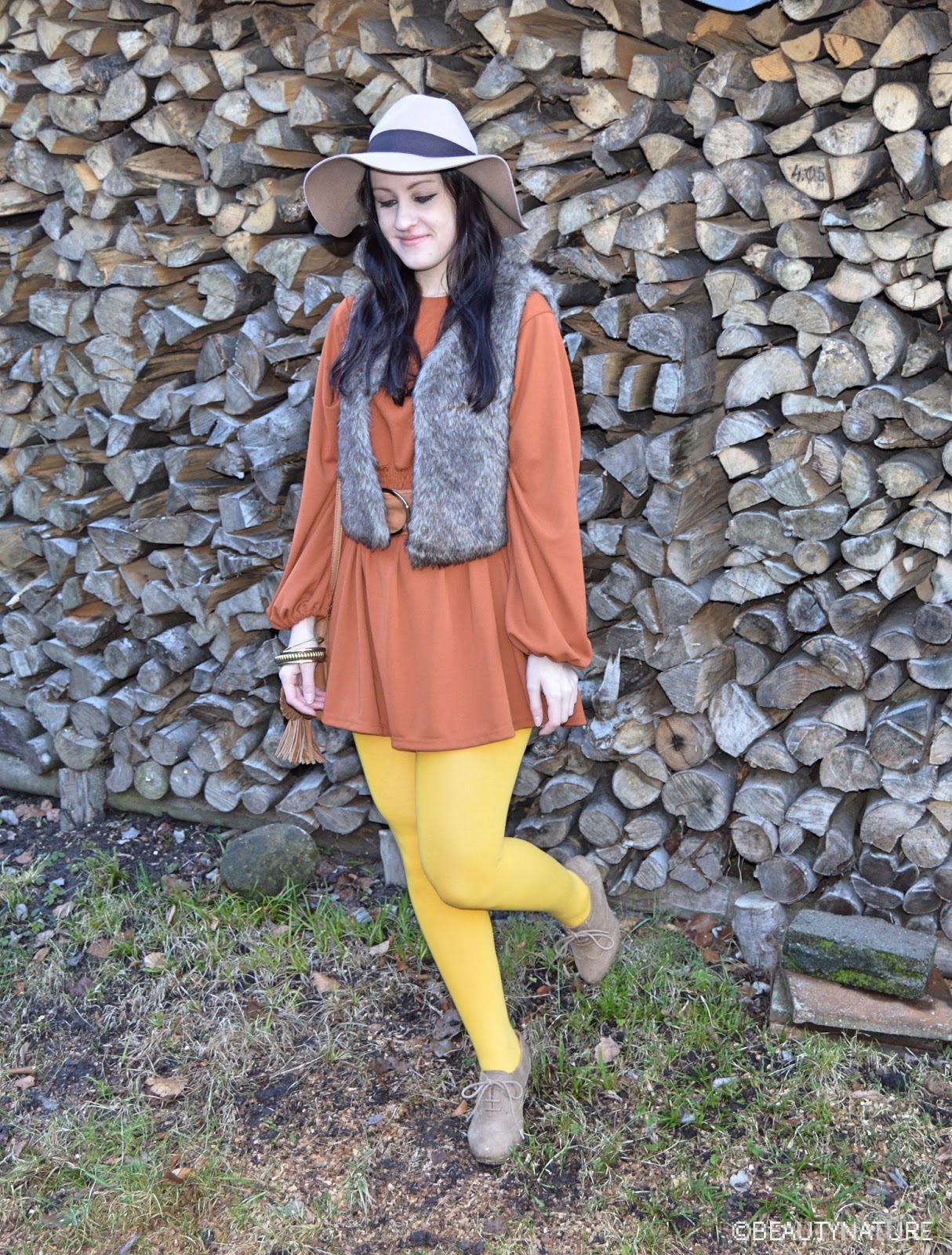 Retro, retro, retro…;-) der Style ist wirklich super an die 70er angepasst – vor allem farblich. Wow, was für eine Strumpfhosen-Farbe. Super, daß du diese Ankle Boots dazu kombiniert hast – sieht fantastisch aus!