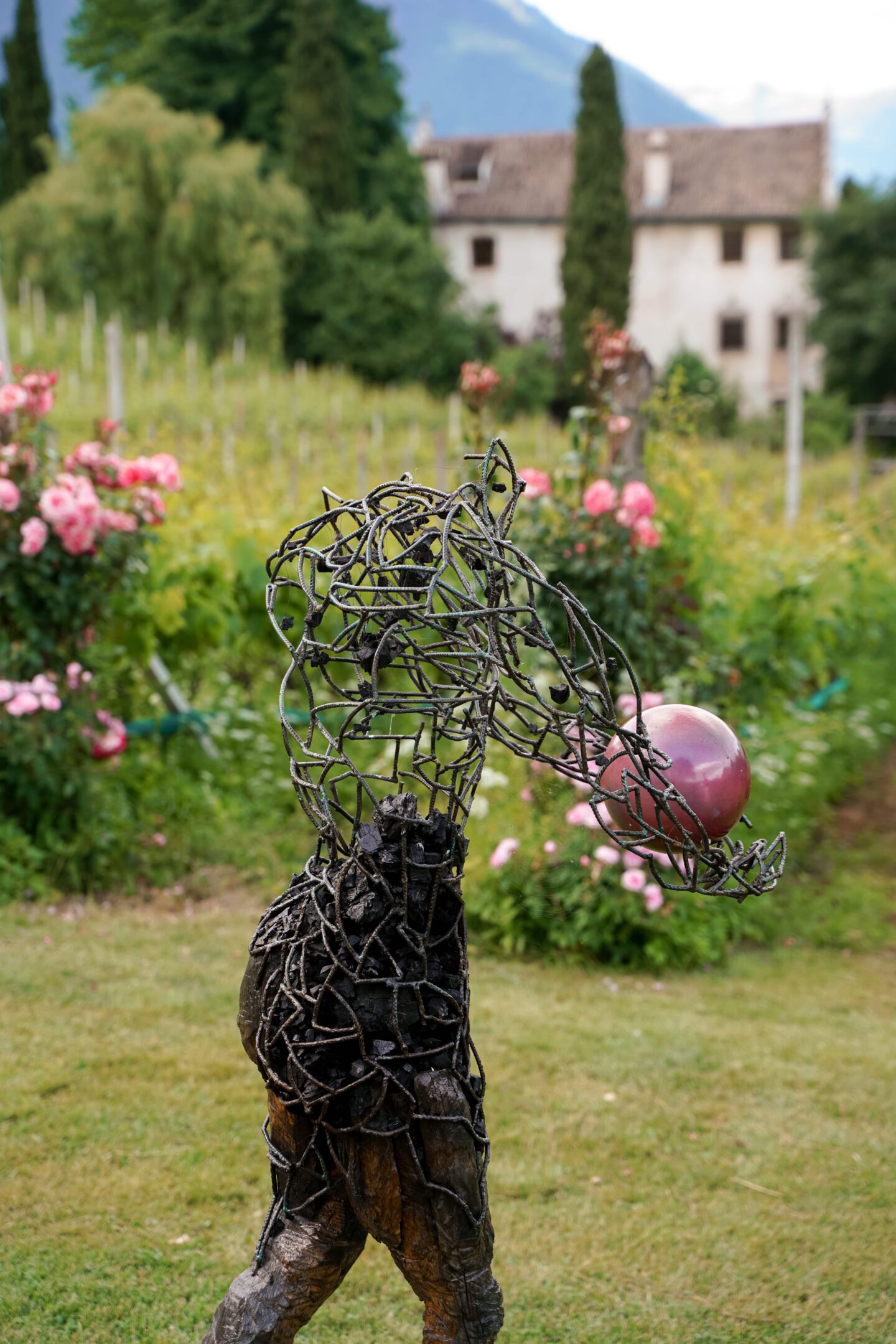 A cultural and culinary highlight at the same time was our visit to Kränzelhof in Tscherms. The seven gardens surrounding the winery invite you to marvel, explore, and slow down. Amid modern art installations, enchanted paths, and meditative spots, you can truly immerse yourself in another world here. After our stroll, we enjoyed a wine tasting featuring selected labels from the estate – a true sensory experience.
