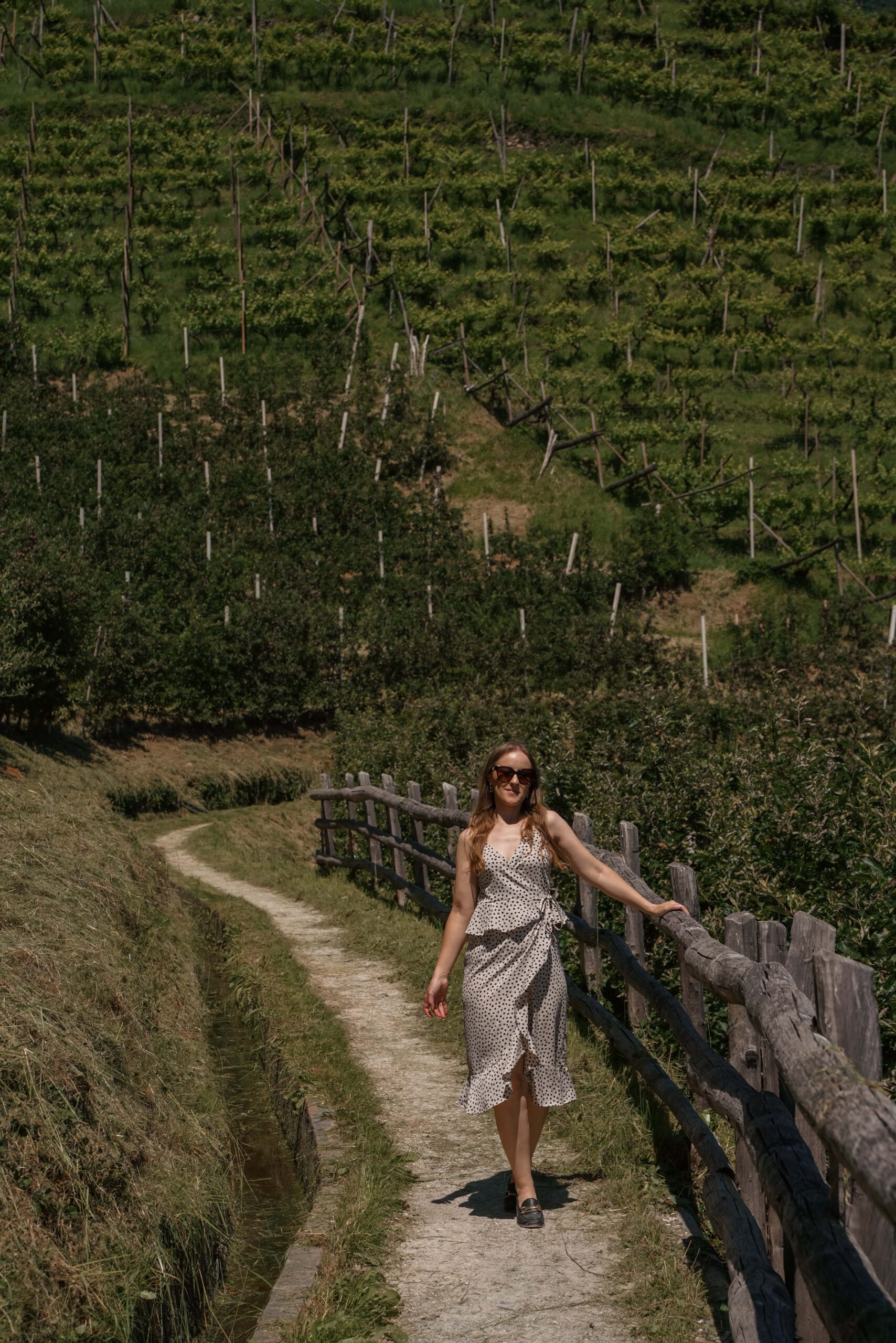 Another nature experience was our hike along the Marlinger Waalweg. This historic water channel trail stretches over several kilometers through apple orchards, mixed forests, and gentle hills. The gentle babbling of the water, the views over the Adige Valley, and the soft forest paths make this route a meditative experience. It is also well suited for families and offers numerous resting spots with beautiful views.