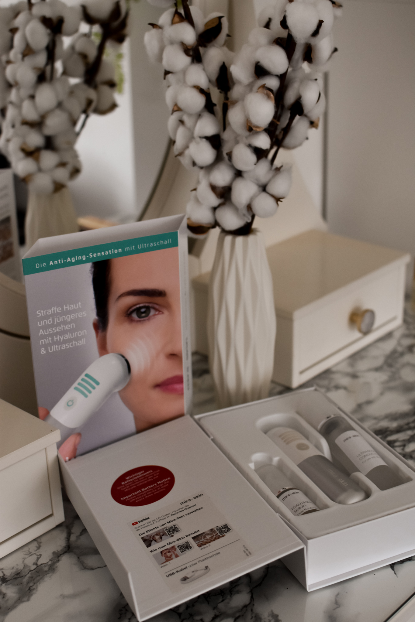 Besides the Mira-Skin ultrasound device, I was allowed to test the matching cosmetics. For the beginning I used the Hyaluron-Serum, the Mira-Skin and the contact gel. I would like to show you briefly how the individual care steps work and how easy the application is, as well as how the ultrasound works.