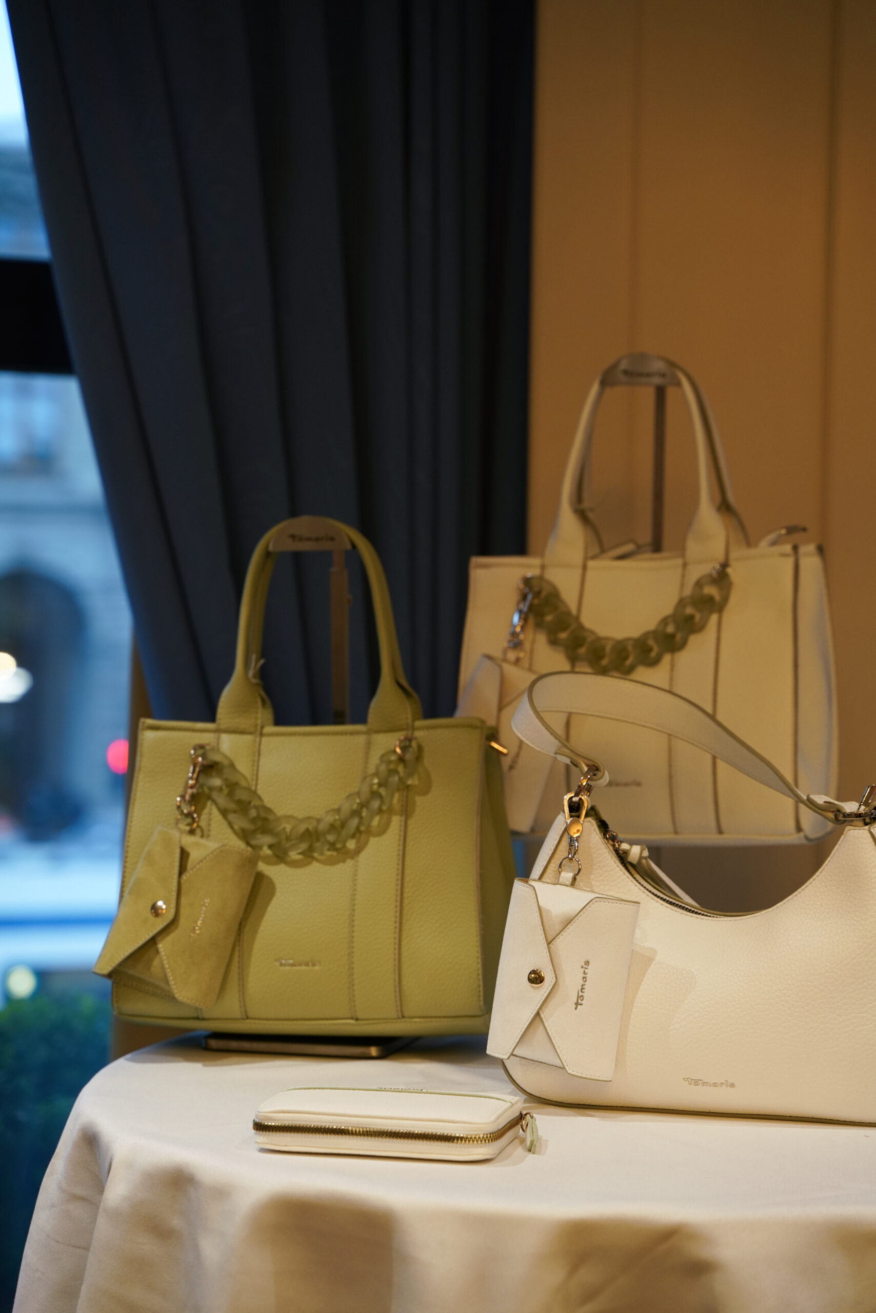 Ob Büro, Freizeit oder Abendveranstaltung – *Tamaris* präsentierte Taschen, die für jeden Anlass den passenden Begleiter bieten. Die Vielfalt der Modelle reichte von eleganten Clutches bis hin zu lässigen Rucksäcken. Besonders die subtilen Farbnuancen und die durchdachte Funktionalität machten die Kollektion zu einem echten Hingucker.