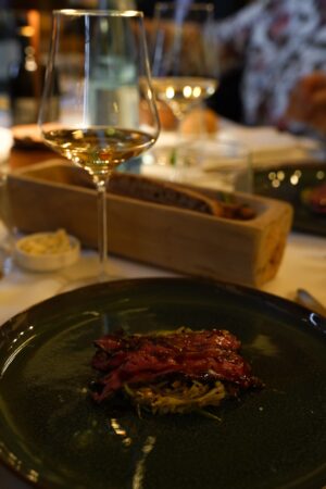An meinem ersten Abend in Marling erwartete mich ein Degustationsmenü mit Weinbegleitung im Gourmetrestaurant des Hotels, wo Chefkoch Werner Seidner uns mit seinen kulinarischen Kreationen verwöhnt. Später am Samstag durfte ich das Wine & Dine Event mit einer Symbiose aus Wagyu und Wein im Hotel Oberwirt geniessen. Das Wagyu-Rindfleisch, bekannt für seine aussergewöhnliche Marmorierung und seinen intensiven Geschmack, wurde von den Köchen des Hotels Oberwirt einmalig zubereitet. Um das kulinarische Erlebnis abzurunden, wurden die Gerichte mit Bio-Weinen vom Lieselehof begleitet. Die Weine des Lieselehofs zeichnen sich durch ihre herausragende Qualität und ihre nachhaltige Anbauweise aus, die das Terroir und die natürlichen Eigenschaften der Weinberge widerspiegeln. Von fruchtigen Weissweinen bis hin zu kräftigen Rotweinen bietet die Auswahl des Lieselehofs eine Vielfalt an Aromen und Geschmacksrichtungen, die perfekt zu den verschiedenen Gängen des Wagyu-Beef Dinners gepasst haben. Vom Sekt zum Apéro bis hin zum Dessertwein für den süssen Abschluss.