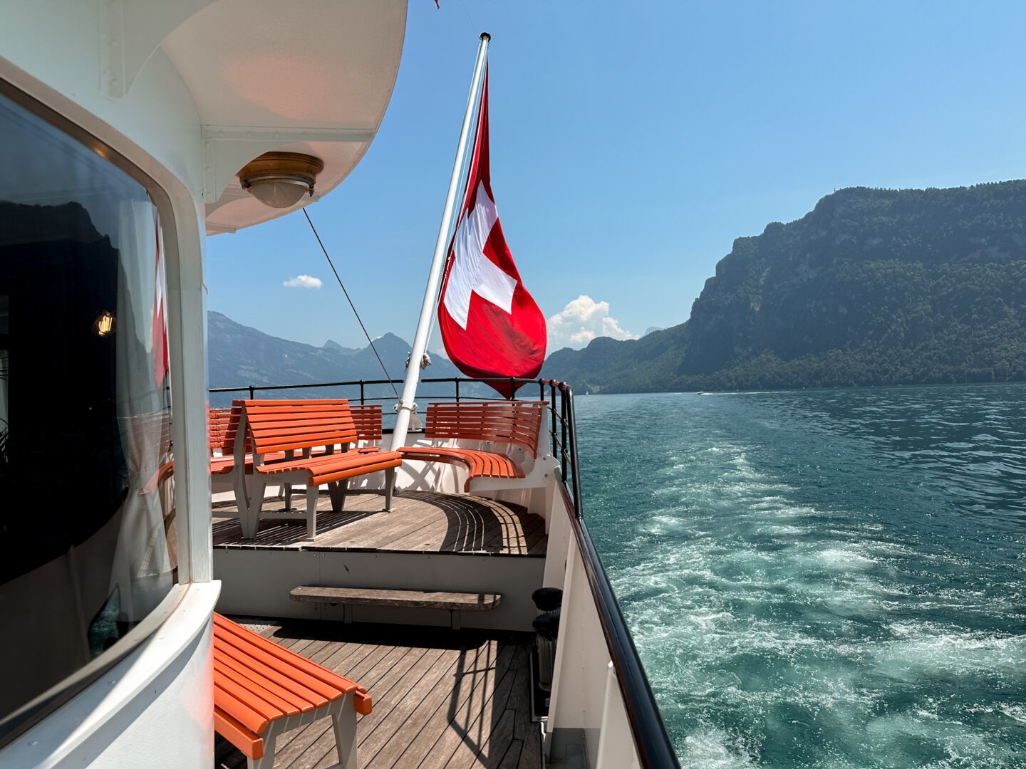 Während die Gallia während der „Legends of Lake Lucerne“- Fahrt gleichmässig durch den Vierwaldstättersee gleitet, fühlt sich alles ein bisschen wie ein Filmset an. Die Kulisse? Atemberaubend. Rigi, Pilatus, Bürgenstock, Rütliwiese – Namen, die ich schon oft gehört habe, aber nie wirklich erlebt habe.