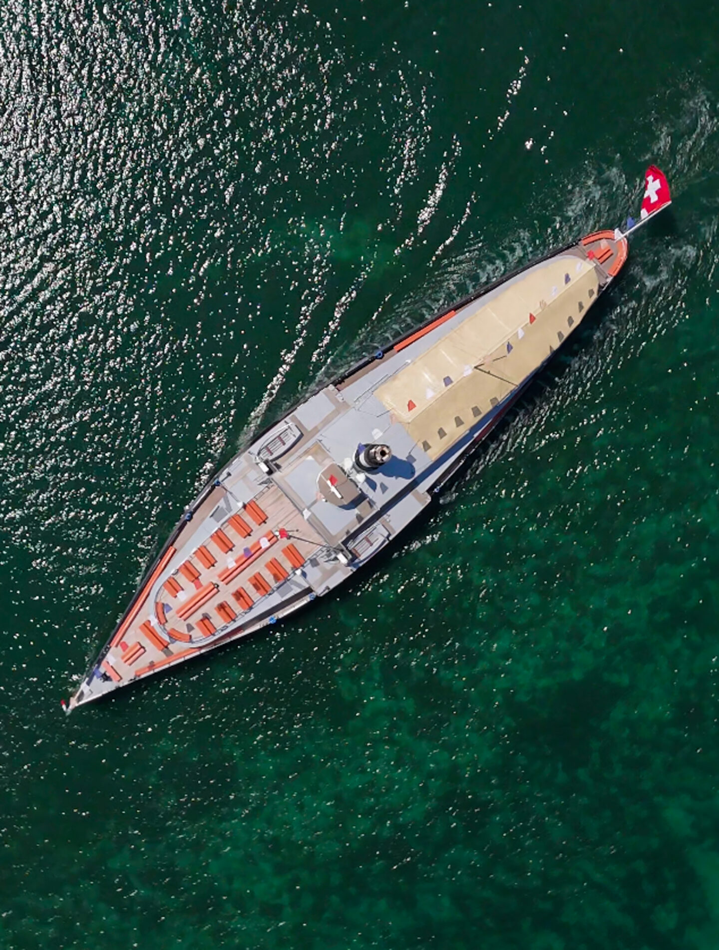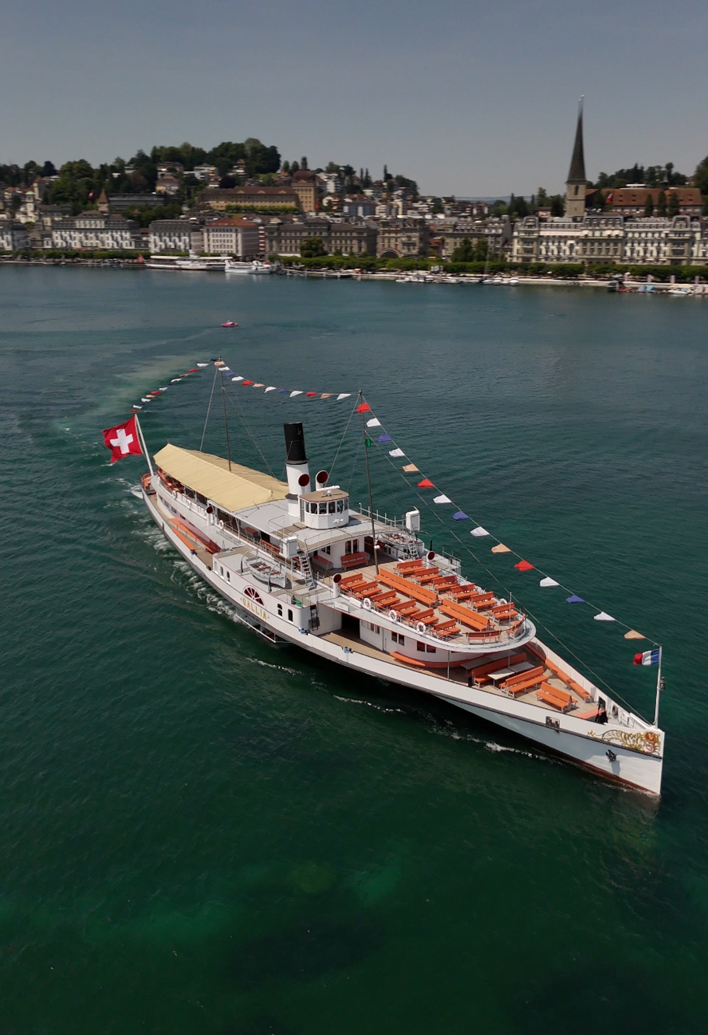Die Gallia ist keine gewöhnliche Lady – sie ist eine über hundertjährige Schönheit mit Stahlherz, Stil und überraschend viel Weitblick. 1913 gebaut, gleitet sie mit ihren 1’085 PS immer noch kraftvoll und würdevoll über den Vierwaldstättersee. Der Rhythmus ihrer Schaufelräder, das sanfte Zischen des Dampfs – das klingt nicht nur nostalgisch, das fühlt sich auch so an.