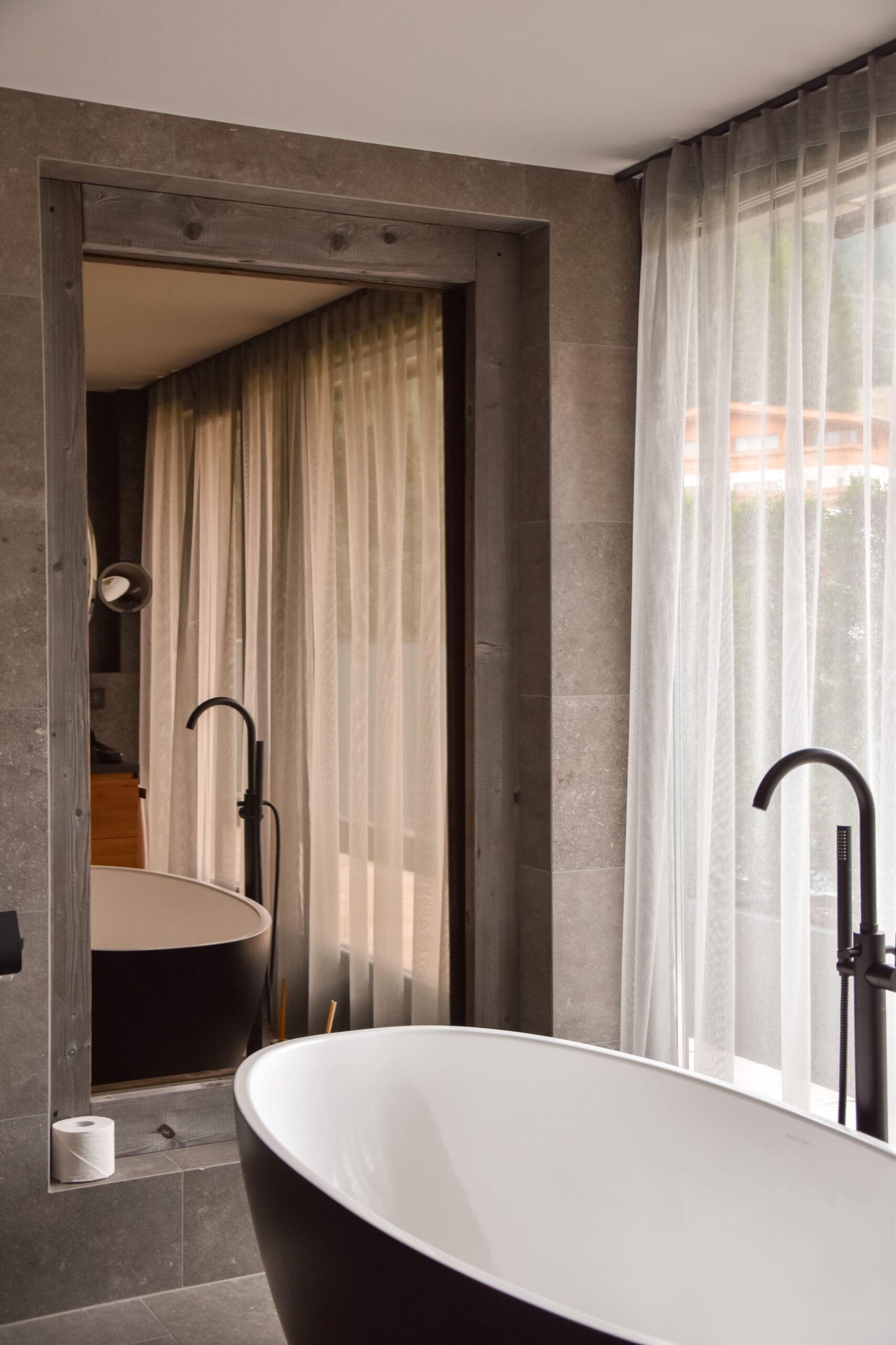 Besonders schön fand ich persönlich die freistehende Badewanne, gerade auch im Winter nach einem Tag auf der Piste immer das beste um zu entspannen. Die modernen und hochwertigen Materialien, sind natürlich auch im Badezimmer zu finden.