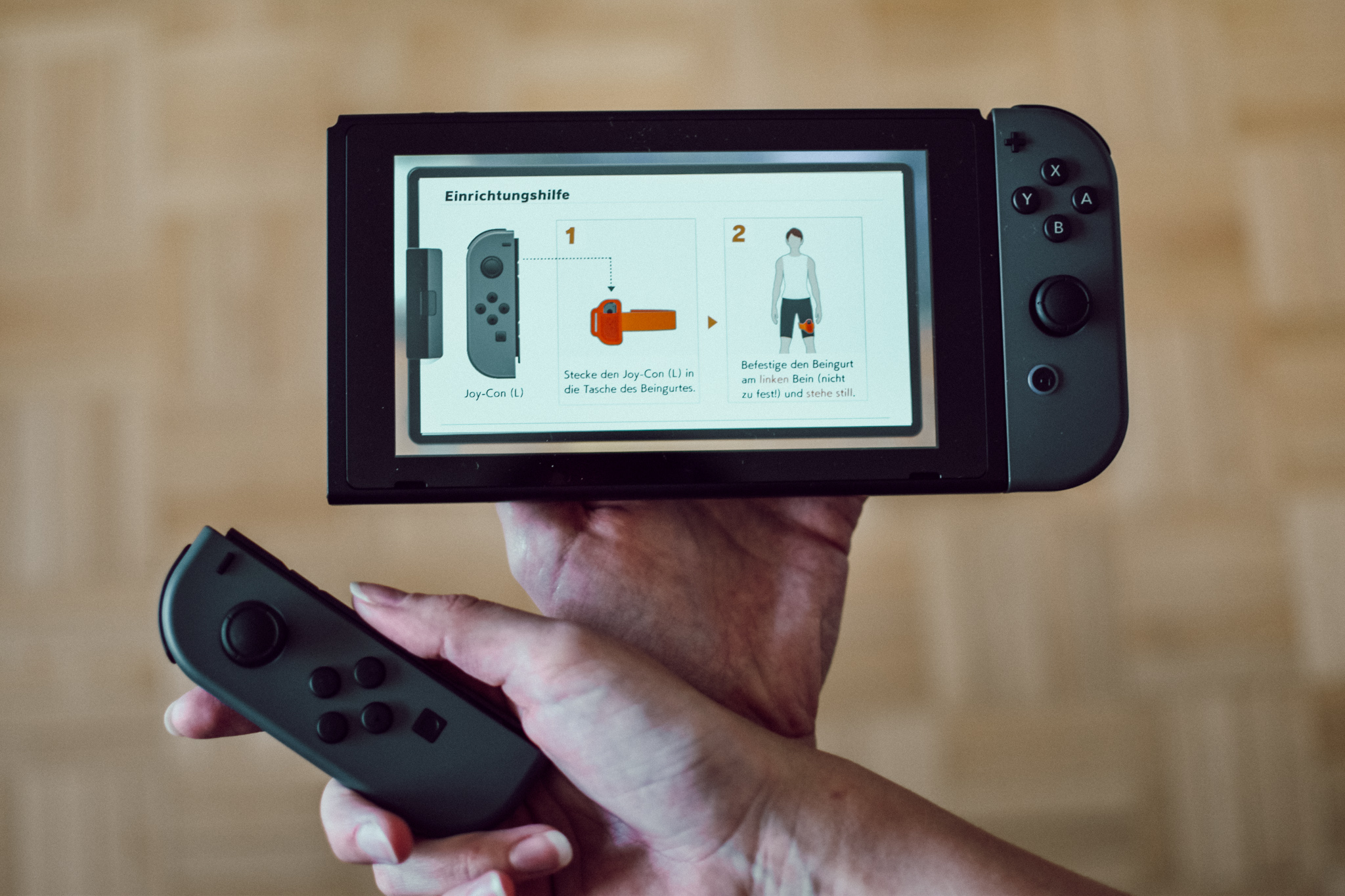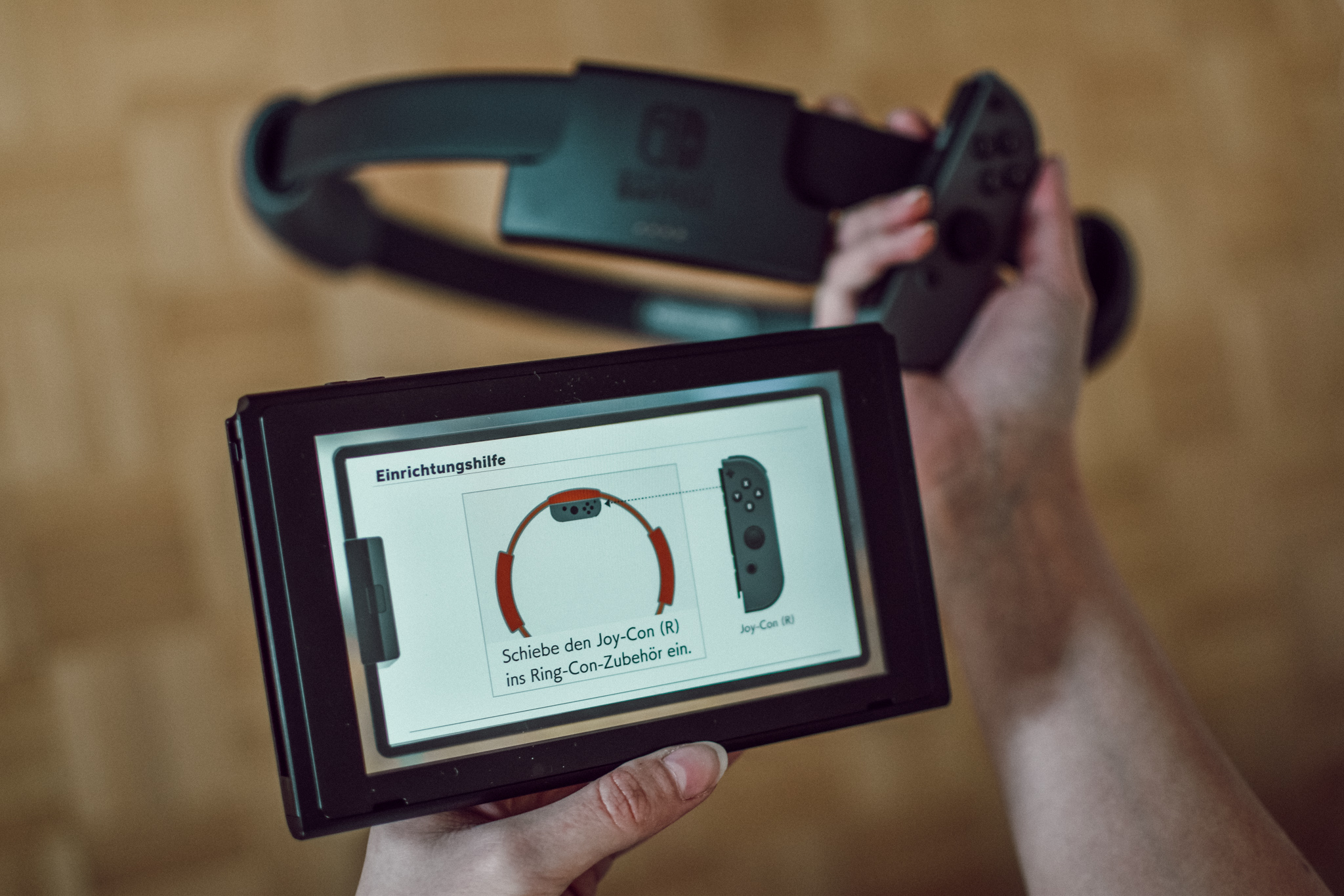 Die Installation dazu ist ganz einfach und wird von der Nintendo Switch angeleitet. Ein Nintendo Switch Joy-Con wird am Ring-Con und der andere mittels Beingurt befestigt. Je nach Übung wird anschliessend dann z.B. der Ring-Con nach oben gehalten, zusammengedrückt etc. Innert weniger Minuten seit ihr ready zum Spielen. Die Nintendo Switch mit RingFit Adventure könnt ihr natürlich auch mitnehmen und so z.B. in der Ferienwohnung etc. spielen und trainieren.