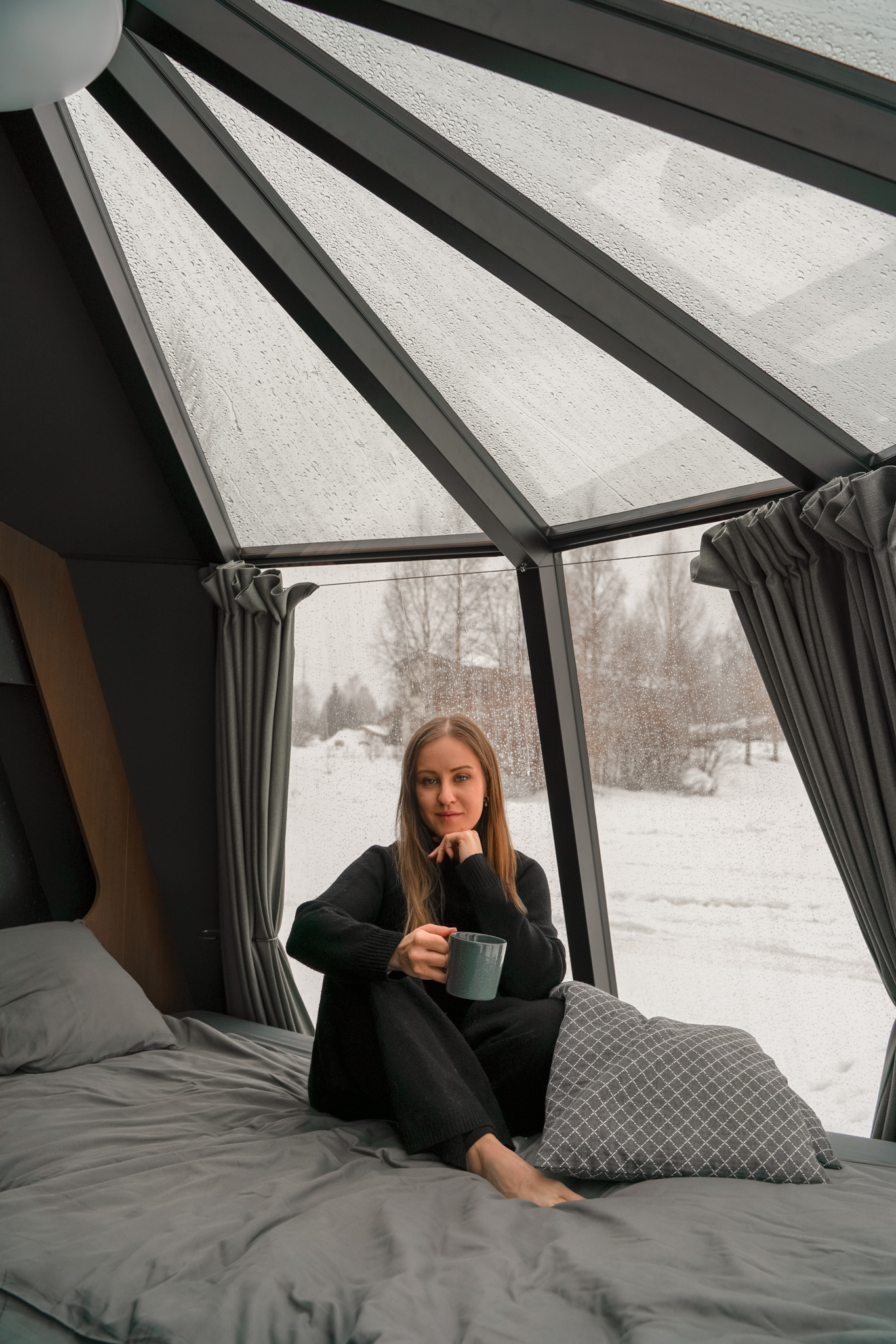Der krönende Abschluss meines Finnland-Roadtrips war eine Nacht in einem Glass Igloo. Diese einzigartige Unterkunft bietet einen spektakulären Blick auf den nächtlichen Himmel, und wenn man Glück hat, kann man sogar die Polarlichter sehen. Ich verbrachte eine Nacht in einem dieser Glas-Iglus und genoss die Stille und Magie der arktischen Landschaft. Es gibt zahlreiche Anbieter von Glass Igloos, hier handelt es sich um ein kleineres Iglu zu einem angemessenen Preis.