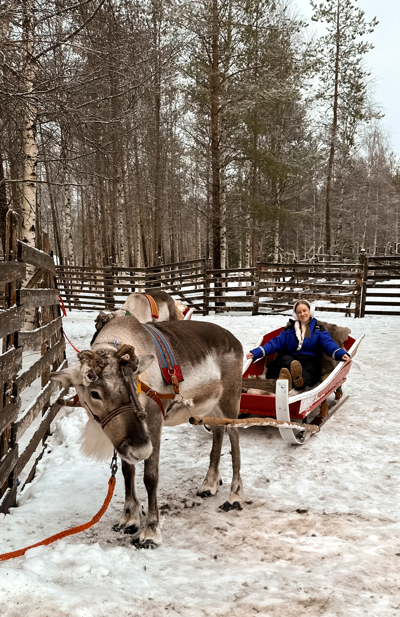 Ein weiteres Highlight in Rovaniemi war der Besuch der Raitola Husky- und Rentierfarm. Hier konnte ich eine aufregende Huskyschlittenfahrt unternehmen – ein unbeschreibliches Erlebnis, von den energiegeladenen Hunden durch die verschneite Landschaft gezogen zu werden.