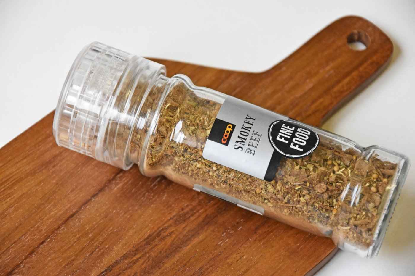 Die Gewürzmühle mit dem sprechenden Namen «Smokey Beef» enthält Salz, das nach alter Tradition von einem kleinen Familienunternehmen in einem Salzgarten auf Zypern gewonnen wird. Seit Anfang der sechziger Jahre werden in behutsamer Handarbeit pyramidenförmige Salzkristalle geschöpft, getrocknet und anschliessend über Eichenholz geräuchert. Der so eingefangene aromatische und zugleich sanfte Rauchgeschmack, ergänzt mit Rosmarin, Oregano, Kümmel und Senfsamen passt hervorragend zu gebratenem Rindfleisch und Rindfleischgerichten.
