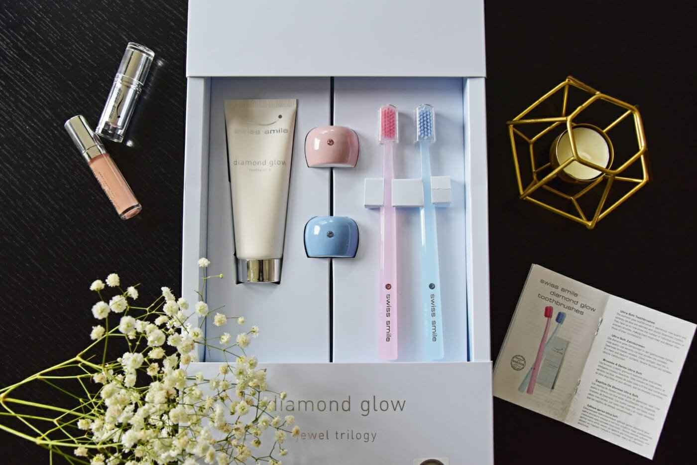 Dieses Wochenende ist bereits der 2. Adventssonntag. Grund genug um auch euch wieder zu beschenken. Vom 8.12. – 12.12.2017 habt ihr die Möglichkeit ein exklusives Produkt von swiss smile zu gewinnen. Ein tolles Produkt ist das swiss smile Trilogy Set: Es enthält die Diamond Glow Zahnpasta und ein Set aus zwei Zahnbürsten sowie passenden Zahnbürstenhaltern verziert mit Swarovski Kristallen.